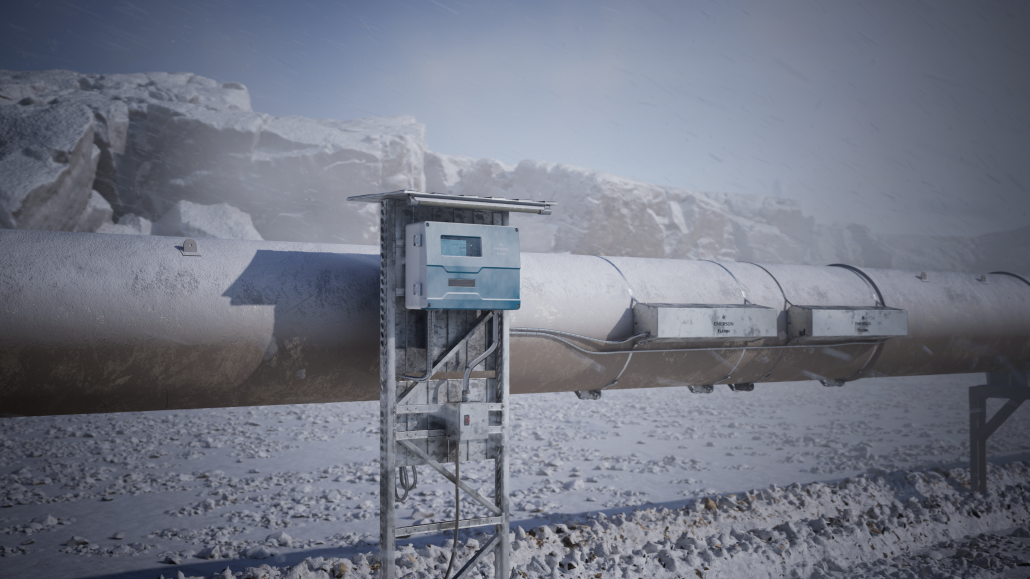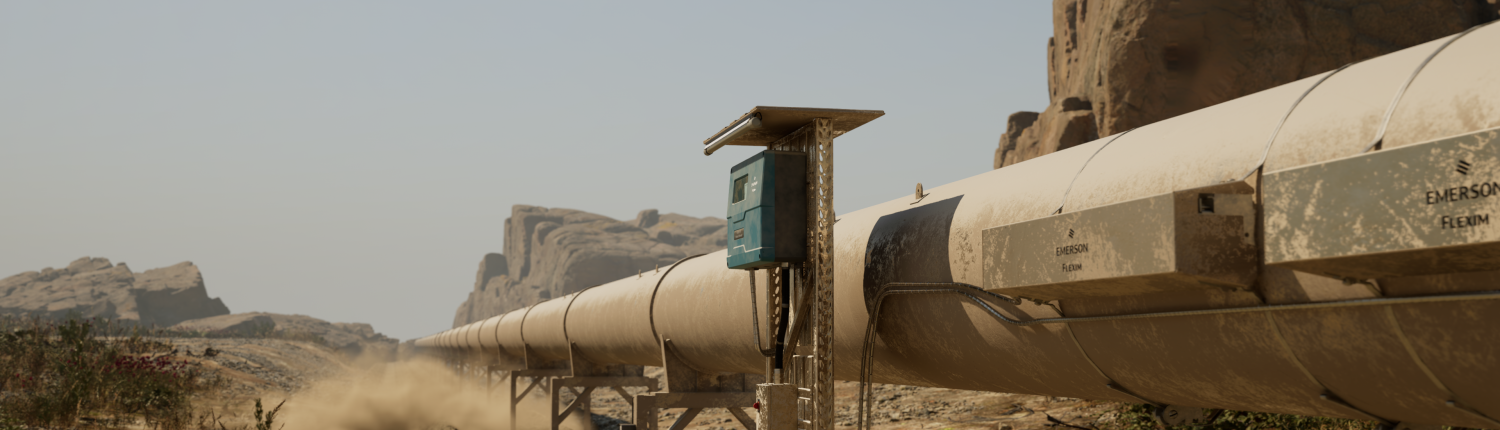 Based on the modular Outdoor Master Scene, all relevant industry segments in which Emerson Flexim® operates — including oil and gas pipelines, chemical industry (outdoor facilities), district heating networks, water and wastewater pipelines, as well as industrial facilities in exposed regions such as coastal areas, deserts, or tundra — can be flexibly expanded and visually adapted. This ensures that any required environment can be realistically represented as needed.